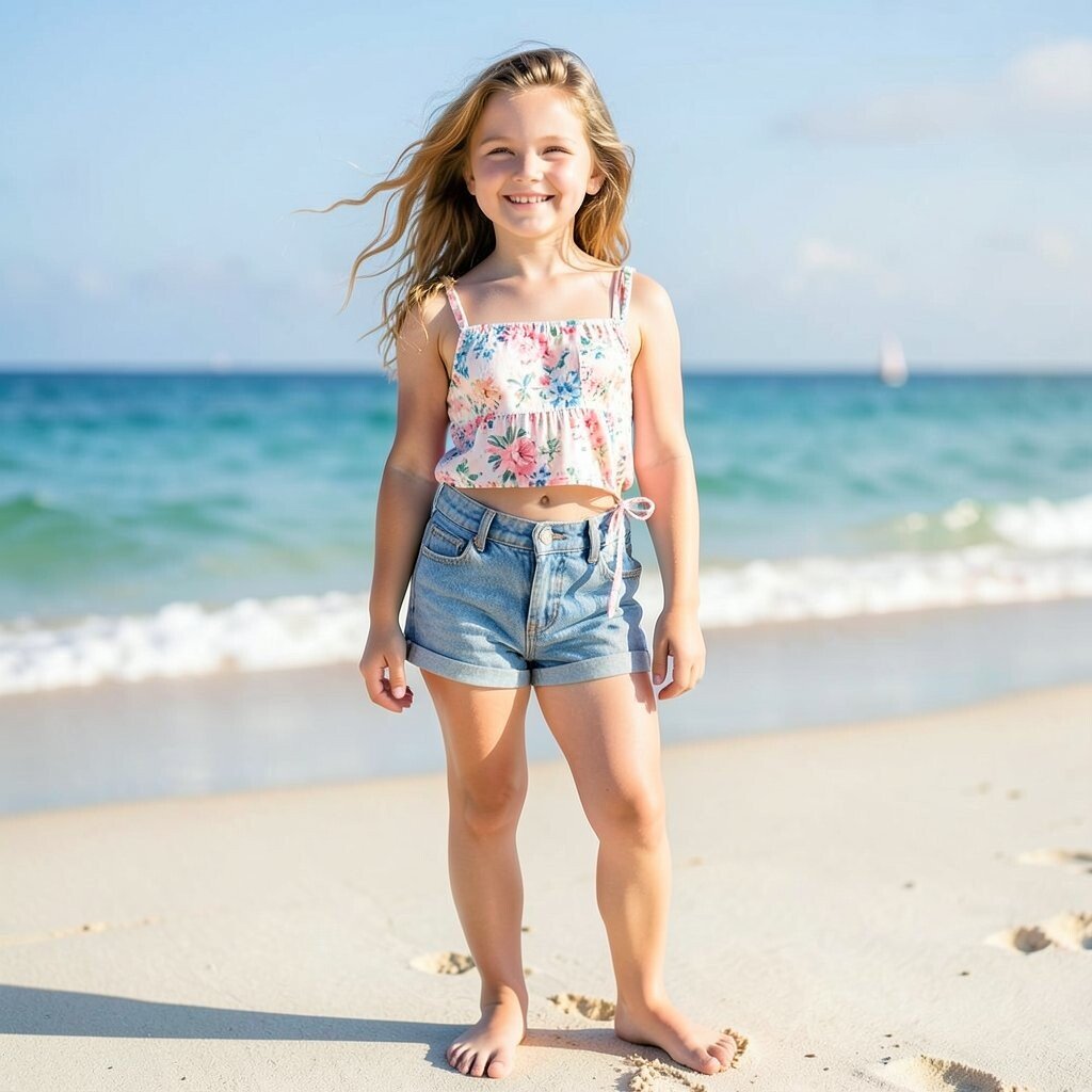You can make it feel special with shell clips, a sun hat, or a towel draped over the arm. Those small details help the whole scene feel alive. Beach looks are always in style because they are bright, easy, and cheerful.
