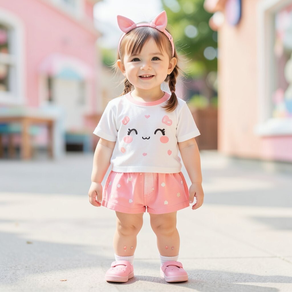 Try a frilly top, short skirt, and cute shoes with bows or hearts. Add a tiny purse, hair clips, or socks with patterns to make it even more fun. This style can be made on a small budget if you use simple shapes and let the colors do the work.