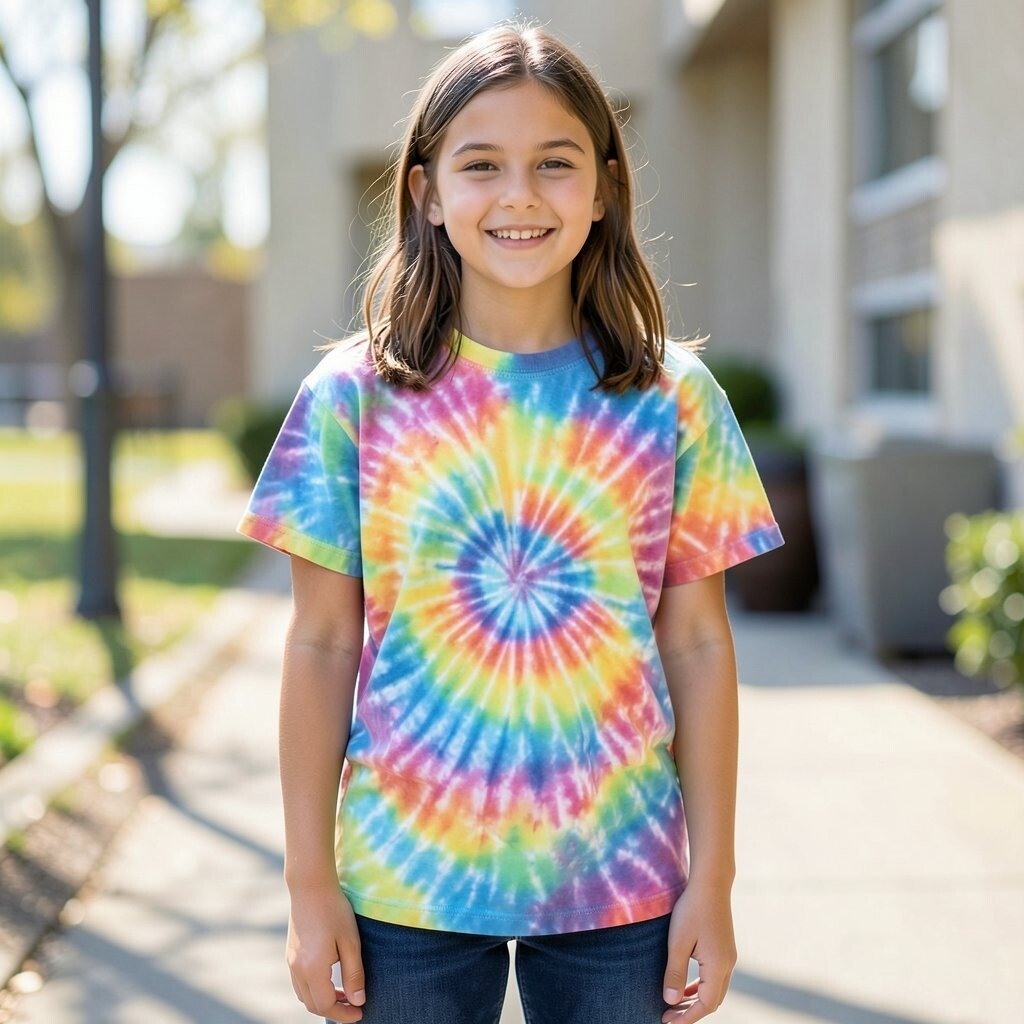 Tie-dye is vibrant and fun, perfect for adding a splash of color. Each piece is unique, making it special.