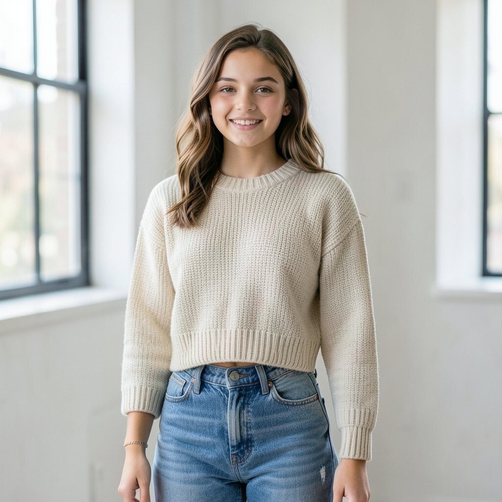 Cropped sweaters are cozy and chic. Ideal for layering over dresses or high-waisted bottoms.