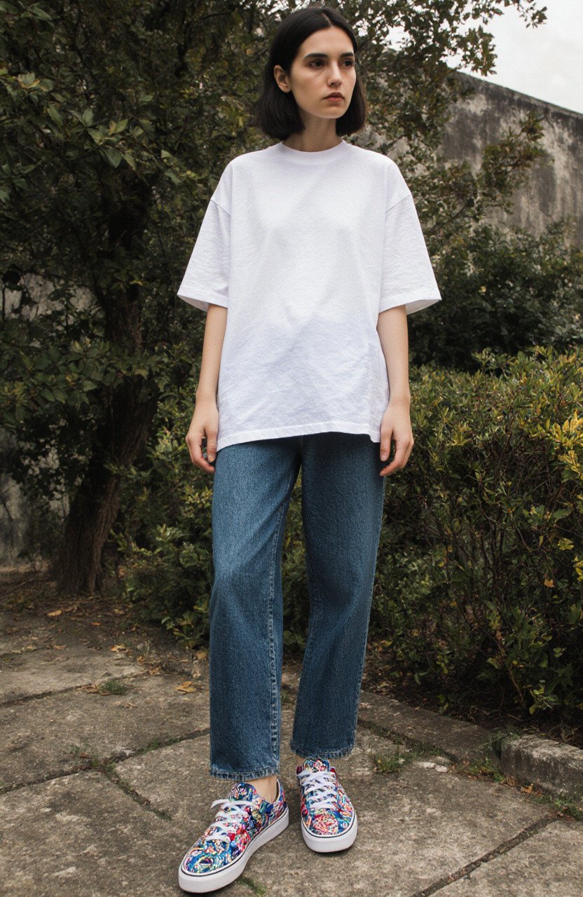 Step into a pair of batik sneakers to add a playful touch to your oversized t-shirt outfit. The sneakers bring a pop of color and pattern to your look. They’re ideal for those who love a sporty yet stylish vibe.