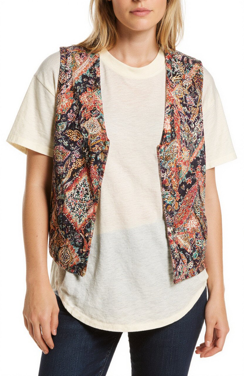 Layer an oversized t-shirt with a batik vest to add dimension and character. The vest provides structure and a splash of color. It’s perfect for layering and creating a boho-chic look.