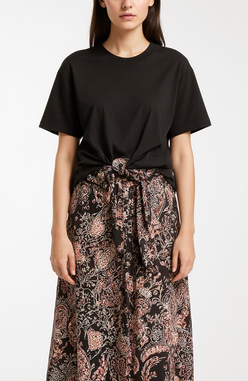 5. Knotted T-Shirt with Batik Maxi Skirt