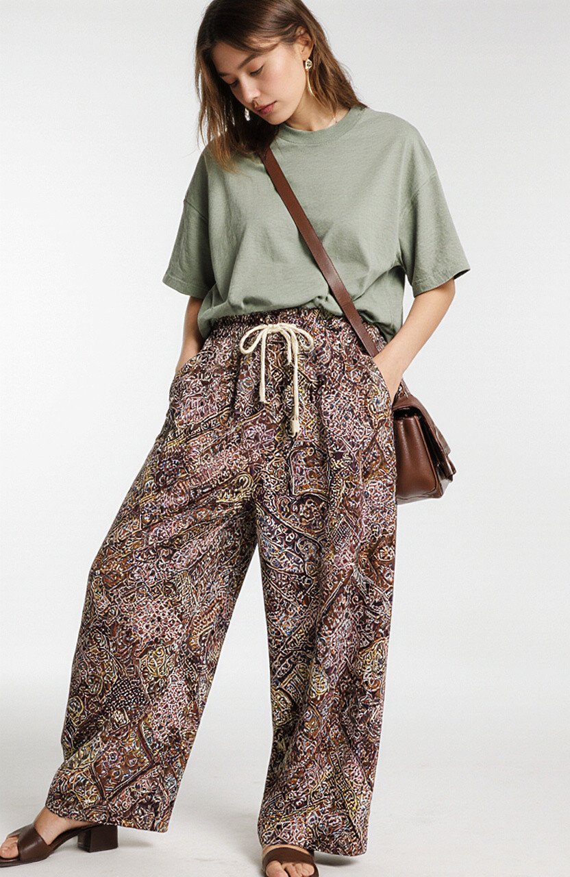 Tuck your oversized t-shirt into a pair of loose batik pants for a chic, relaxed look. The pants usually have a drawstring waist, adding comfort and ease. This outfit is ideal for lounging or running errands in style.