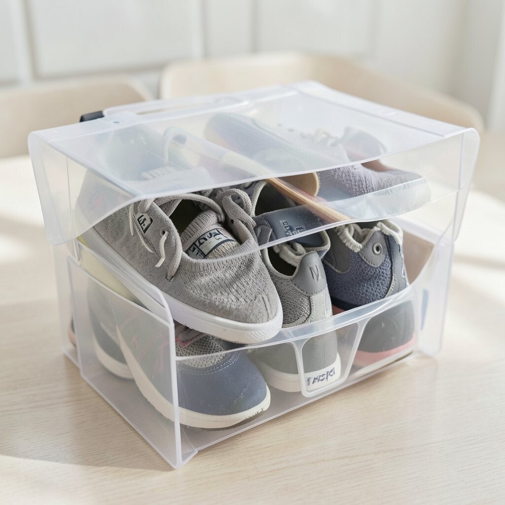 Place a dryer sheet inside to keep your shoes smelling fresh. This simple addition makes a big difference. With shoes separated, your clothes remain pristine and ready to wear.