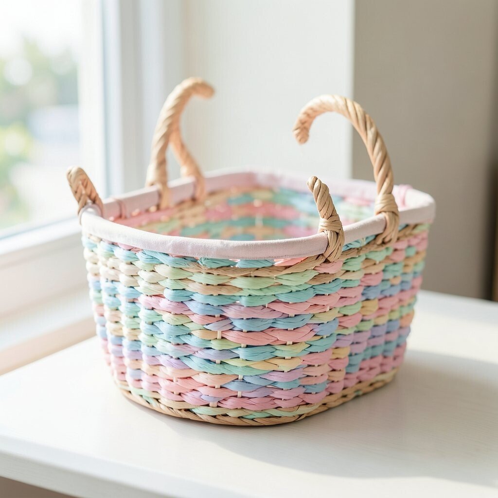 For a soft and dreamy touch, Sweet Pastels baskets feature patches in gentle hues like pink, lavender, and mint. These baskets add a soothing, calming effect to any room.