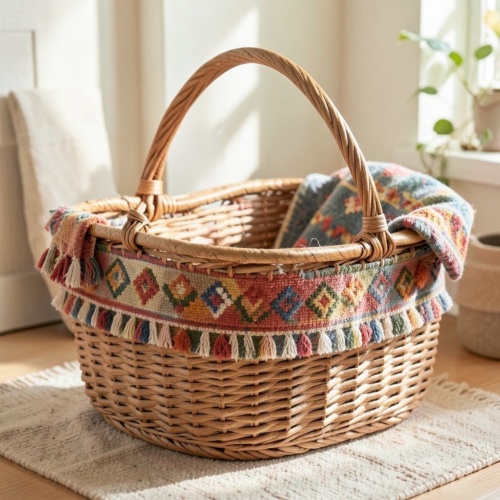For a contemporary twist, Modern Geometric baskets offer bold, angular patches in monochrome shades. These baskets are perfect for minimalistic spaces, adding a dynamic element without overwhelming the decor.