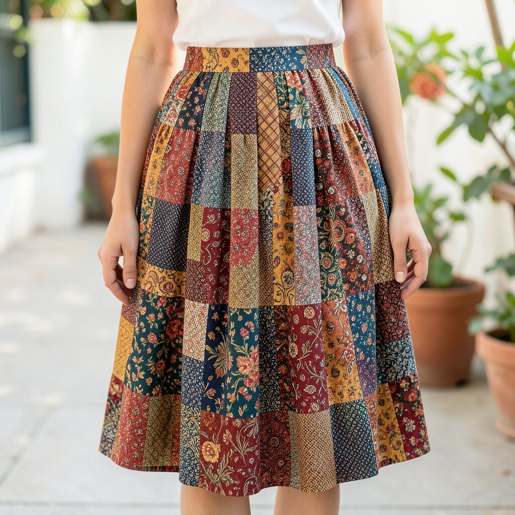 A patchwork skirt can move beautifully and bring life to every step. Indian prints and fabric panels create a look that feels playful, artistic, and easy to wear.