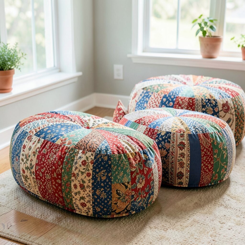 Patchwork poufs fit modern homes because they are both useful and stylish. They can make a space feel relaxed without looking plain.