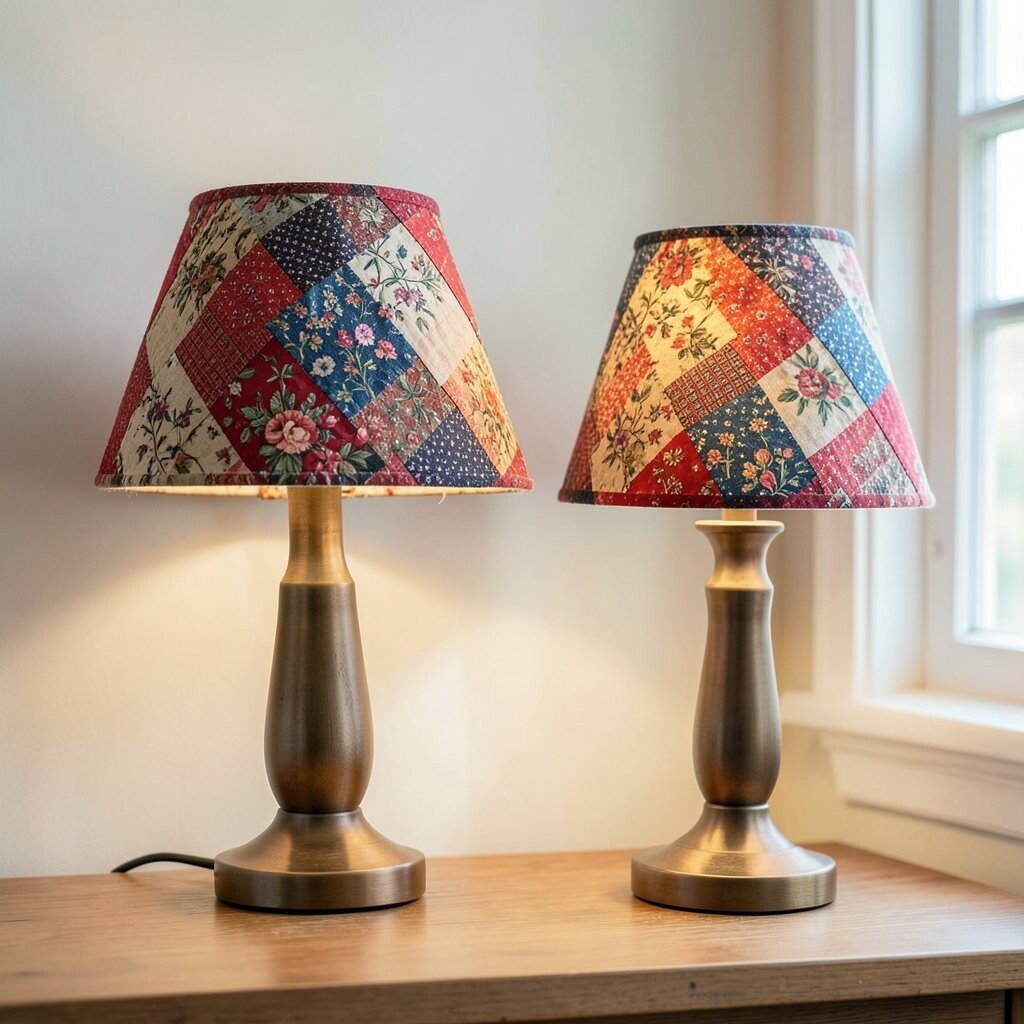 A patchwork lampshade can make light feel warm and cozy. When the lamp is on, the fabric pieces glow in a way that feels magical and inviting.