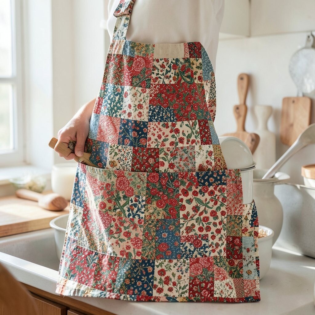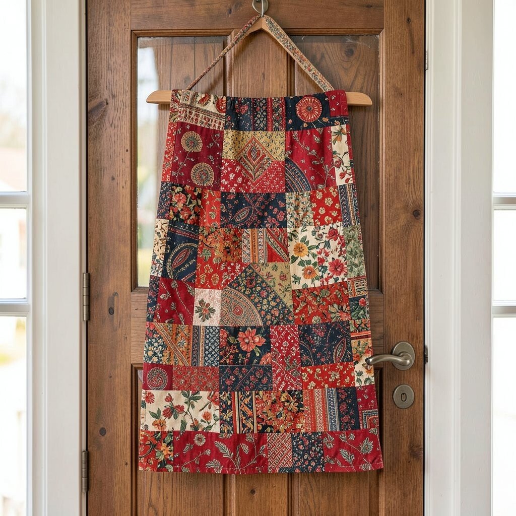 A patchwork apron can make kitchen time feel more cheerful. Indian prints and stitched fabric pieces can turn a simple apron into something bright and fun.