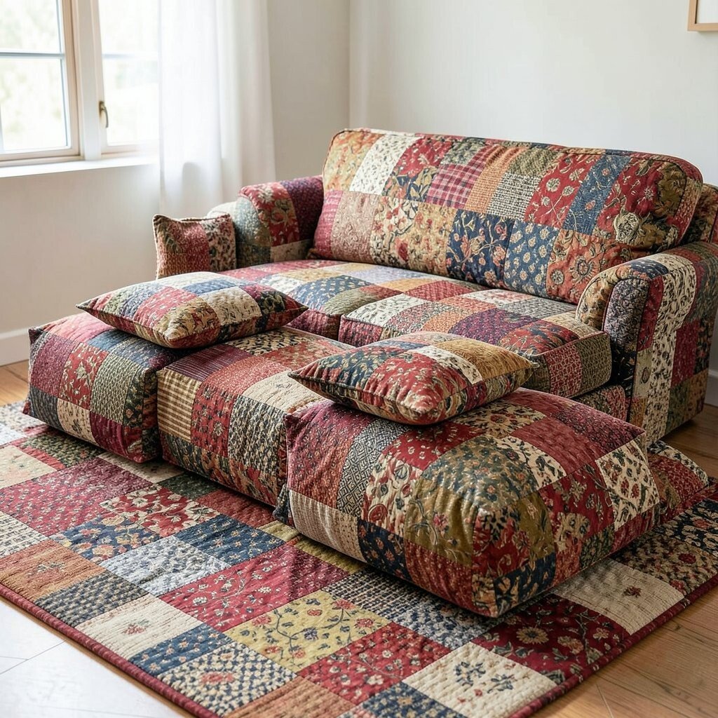 Patchwork fabric can make any space feel warm and full of life. Indian-inspired patchwork brings color, story, and charm into everyday style.