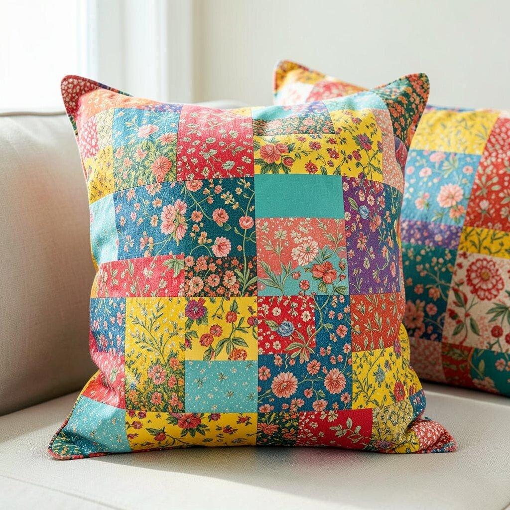 Patchwork cushion covers can wake up a sofa or bed with ease. Small fabric pieces in bold prints create a lively look that feels handmade and welcoming.