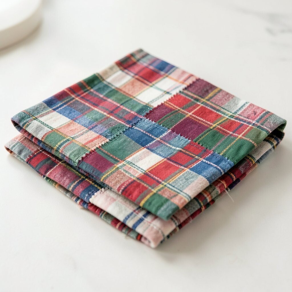 Cozy plaid patch napkins have a warm, classic feel that never gets old. The crossed lines and rich colors make them look perfect for fall meals and quiet family dinners.