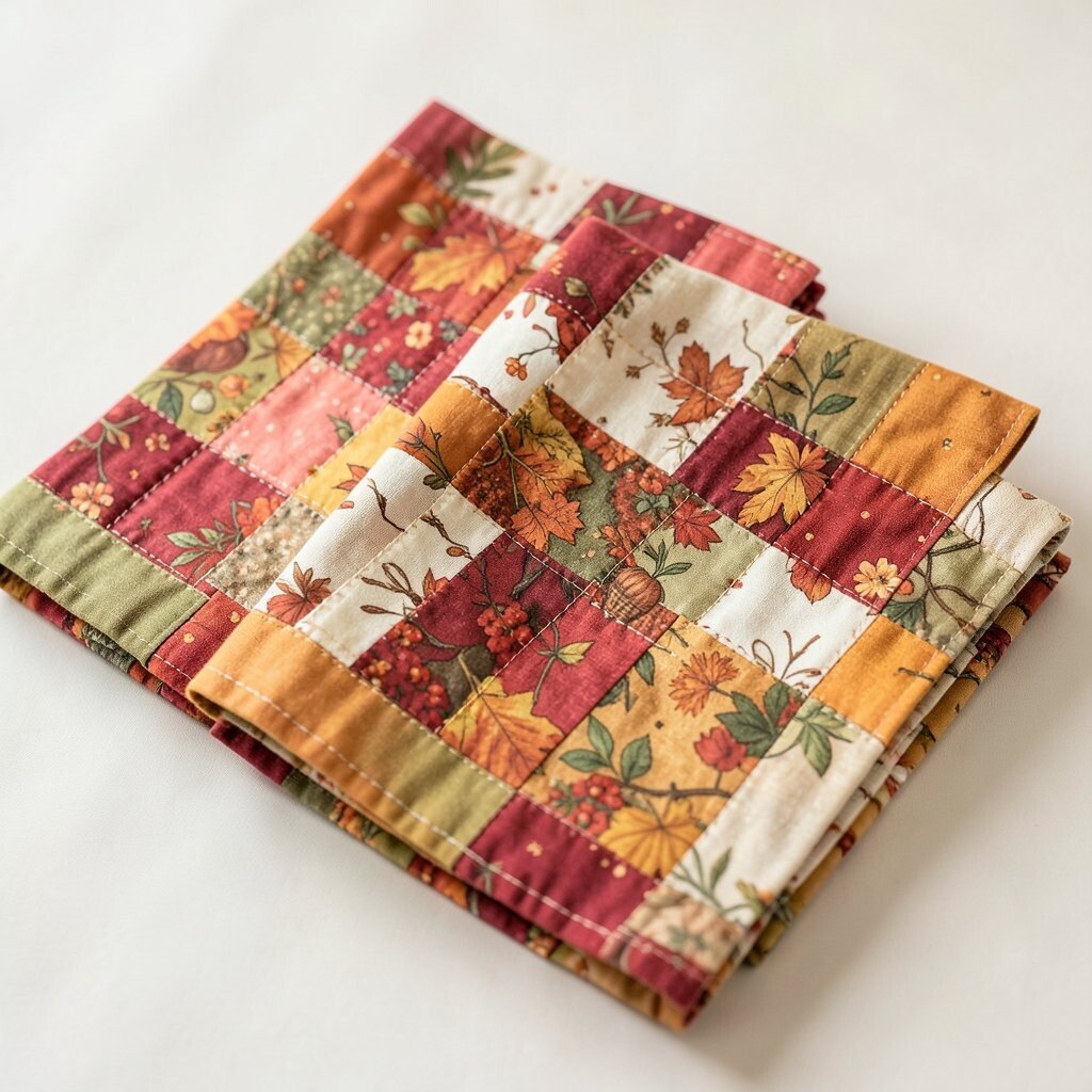 Warm autumn patch napkins bring in shades like rust, gold, brown, and deep red. They make a table feel cozy, like a soft sweater on a cool day.