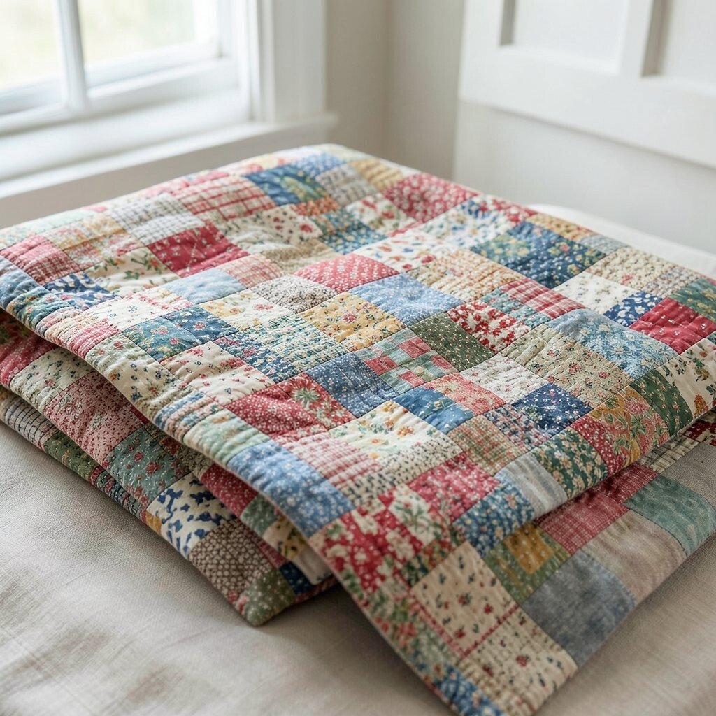 A patchwork lap blanket feels warm and comforting. The mix of fabrics can make it look rich, soft, and full of story.