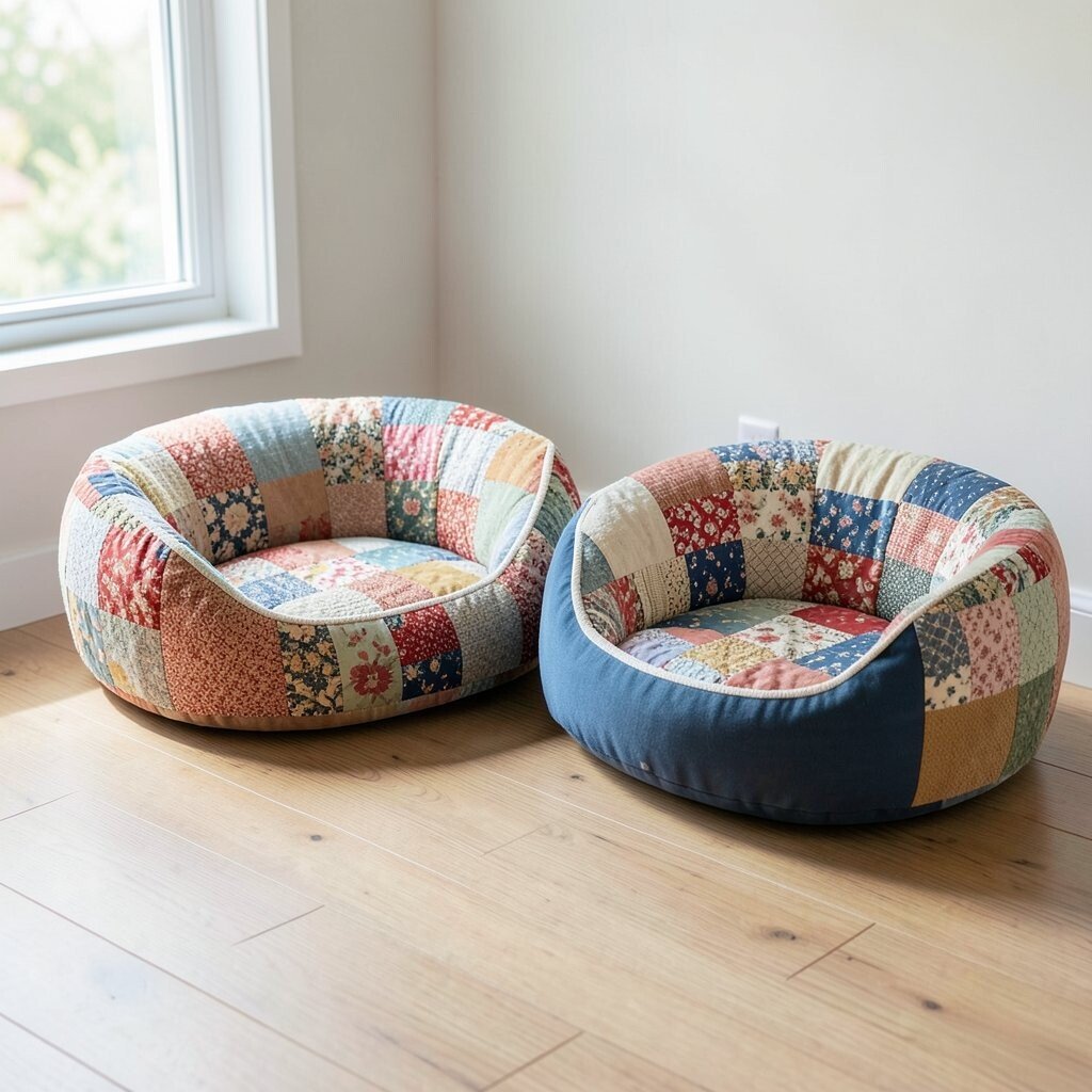 Dog beds in patchwork are cozy and colorful. The patchwork design adds character, while a solid base offers support.