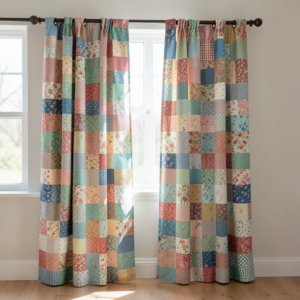 Patchwork curtains can brighten up any room, turning windows into art pieces. The blend of patchwork and solid fabrics allows light to dance through in unique patterns.