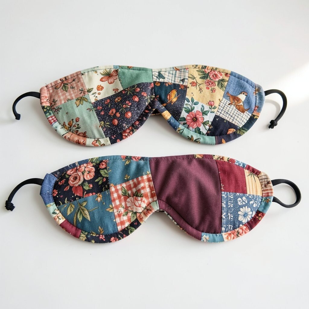 Eye masks made from patchwork are soothing and stylish. The patchwork adds a touch of whimsy, while a solid lining ensures comfort.