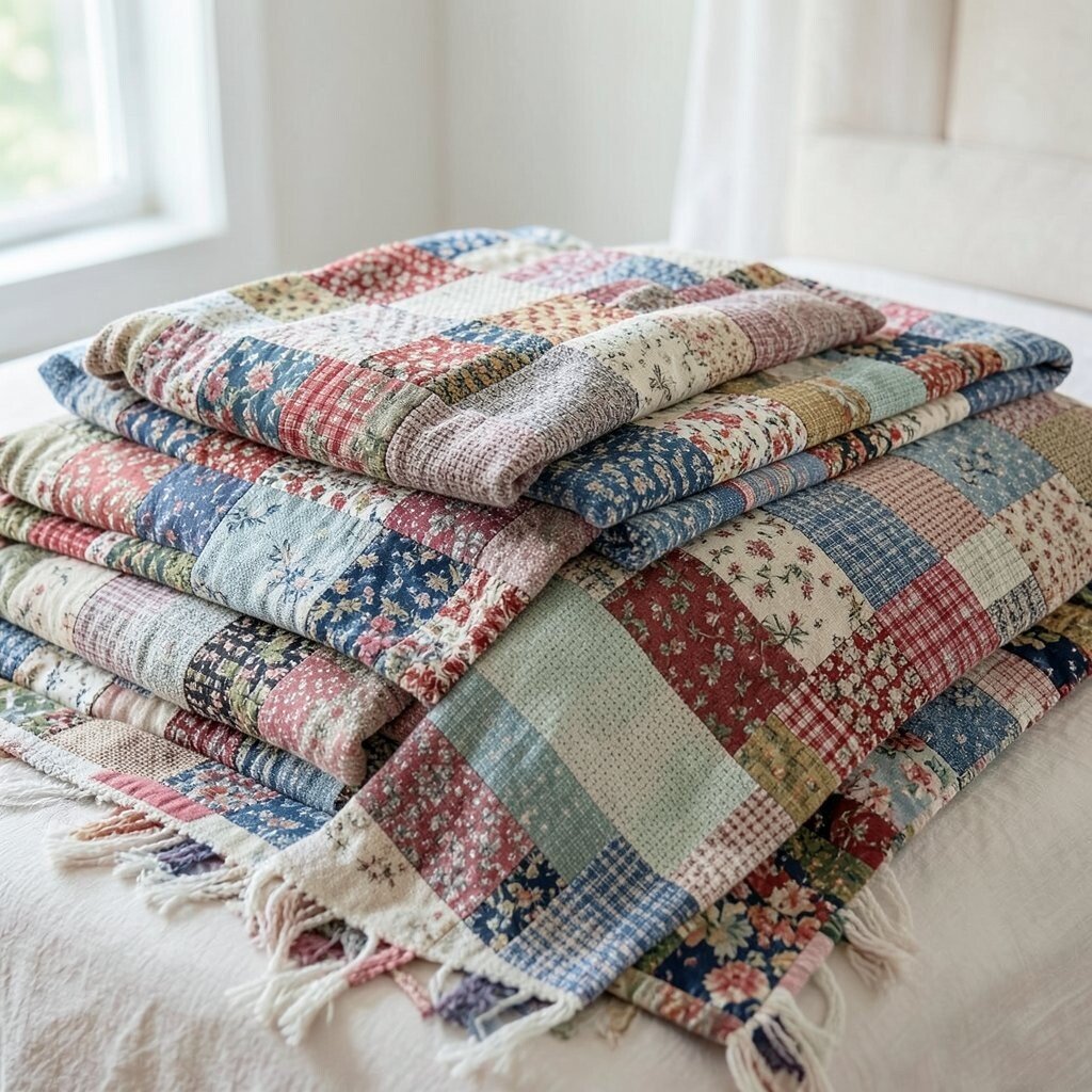 Throw blankets made from patchwork are perfect for snuggling up on the couch. The mix of colors and textures makes them visually appealing and comforting.