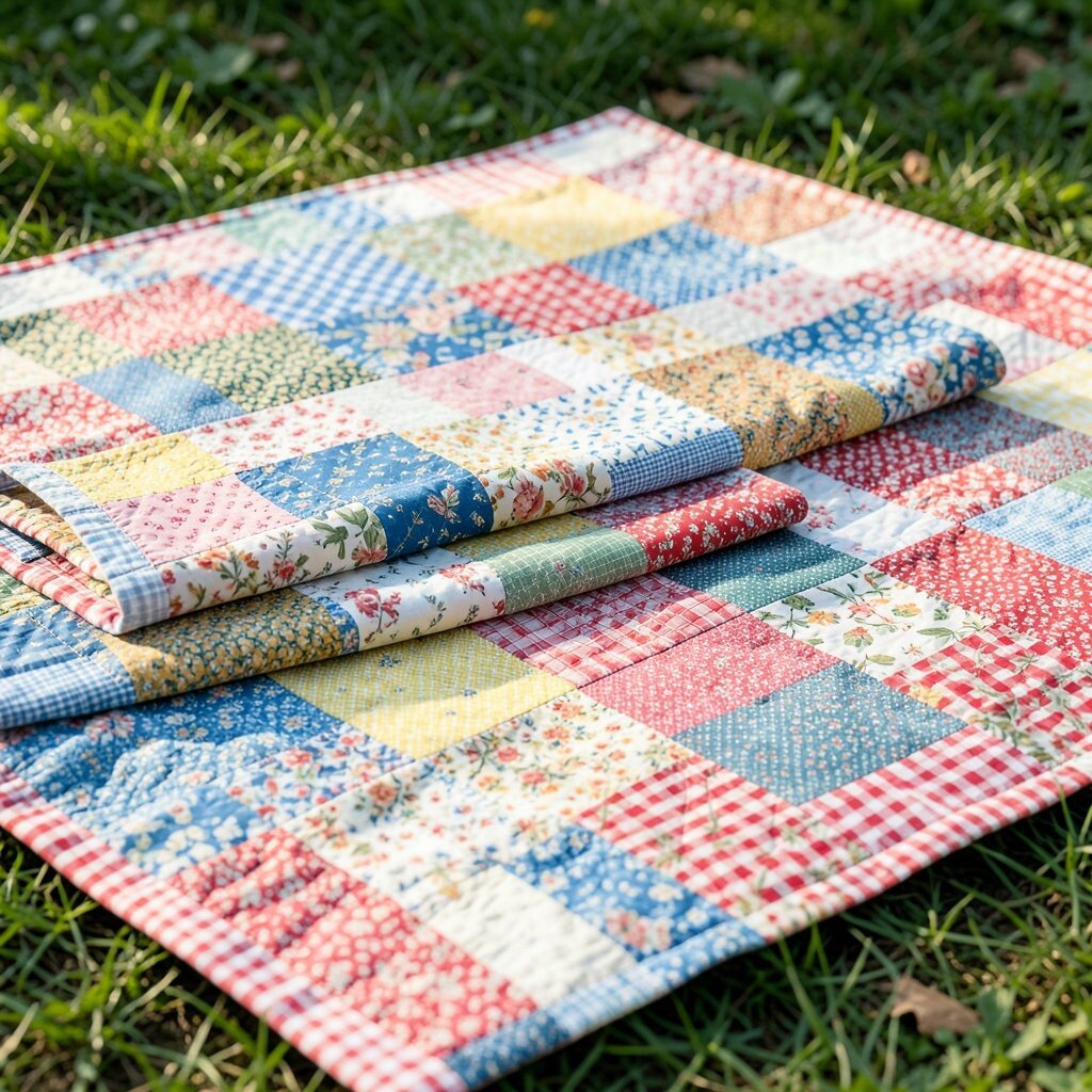 Patchwork picnic blankets bring color to outdoor gatherings. The patchwork design is cheerful, and a solid underside can add durability.
