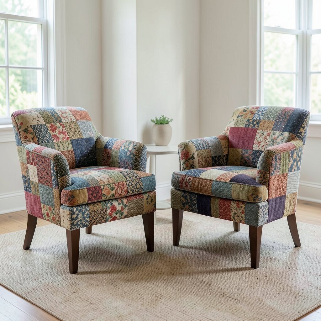 Upholstering a chair in patchwork fabric can transform it into a statement piece. The solid seat or back can balance out the patchwork, making it stand out.