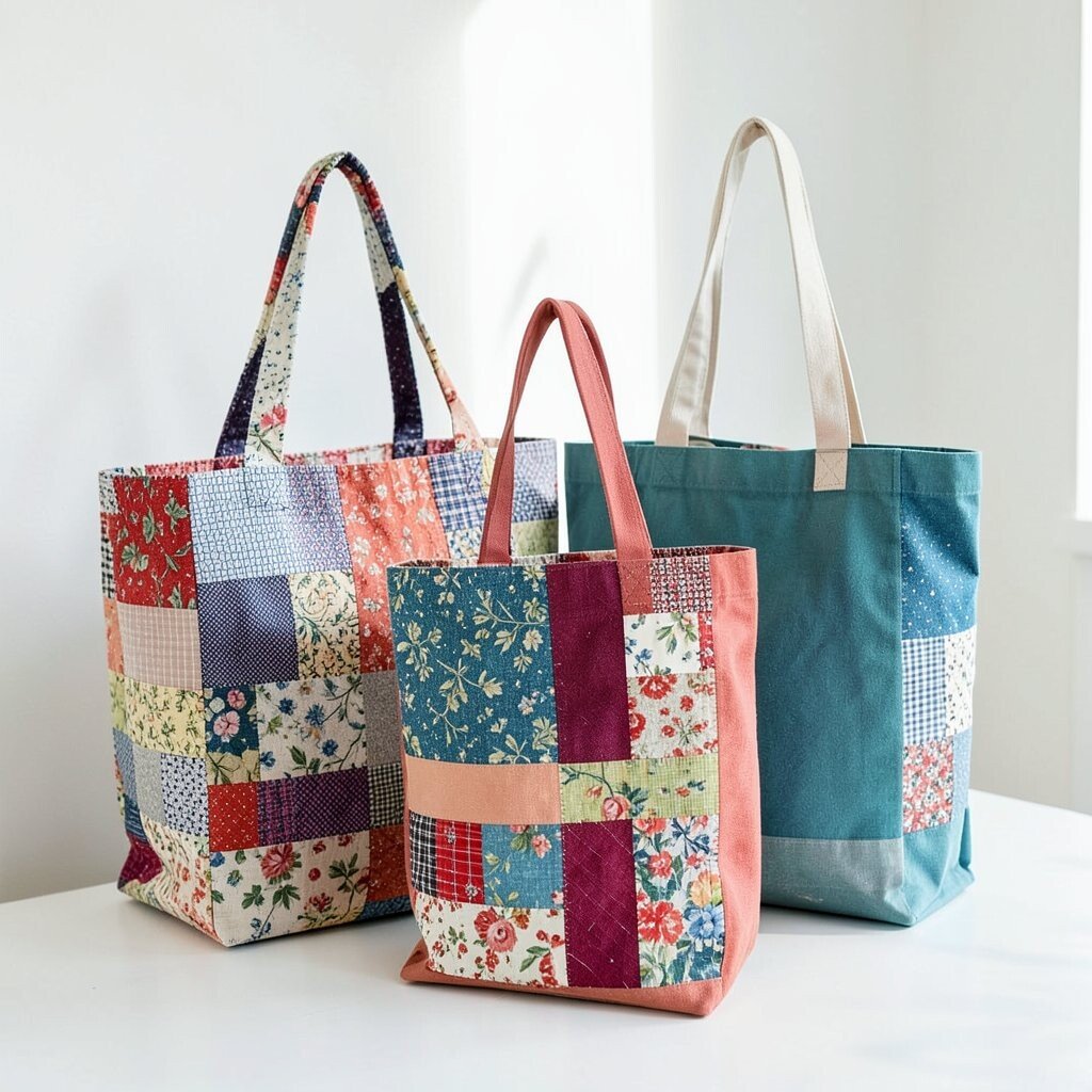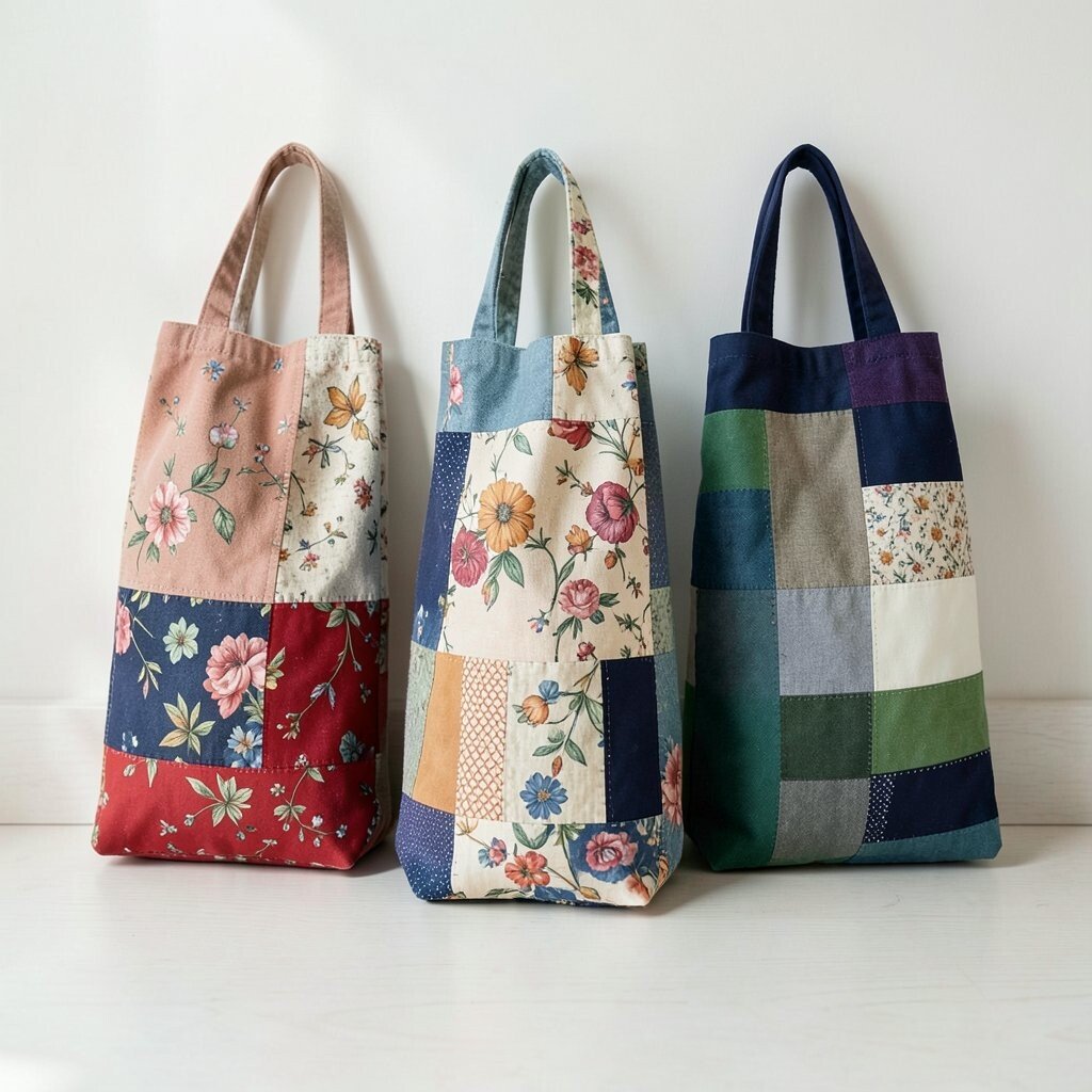 A patchwork tote bag can be your trusty companion for errands or a day out. The mix of fabrics makes it sturdy and stylish. Add a solid strap for a polished look.