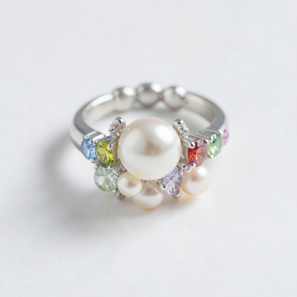 6. Pearl Ring with Colored Gemstones