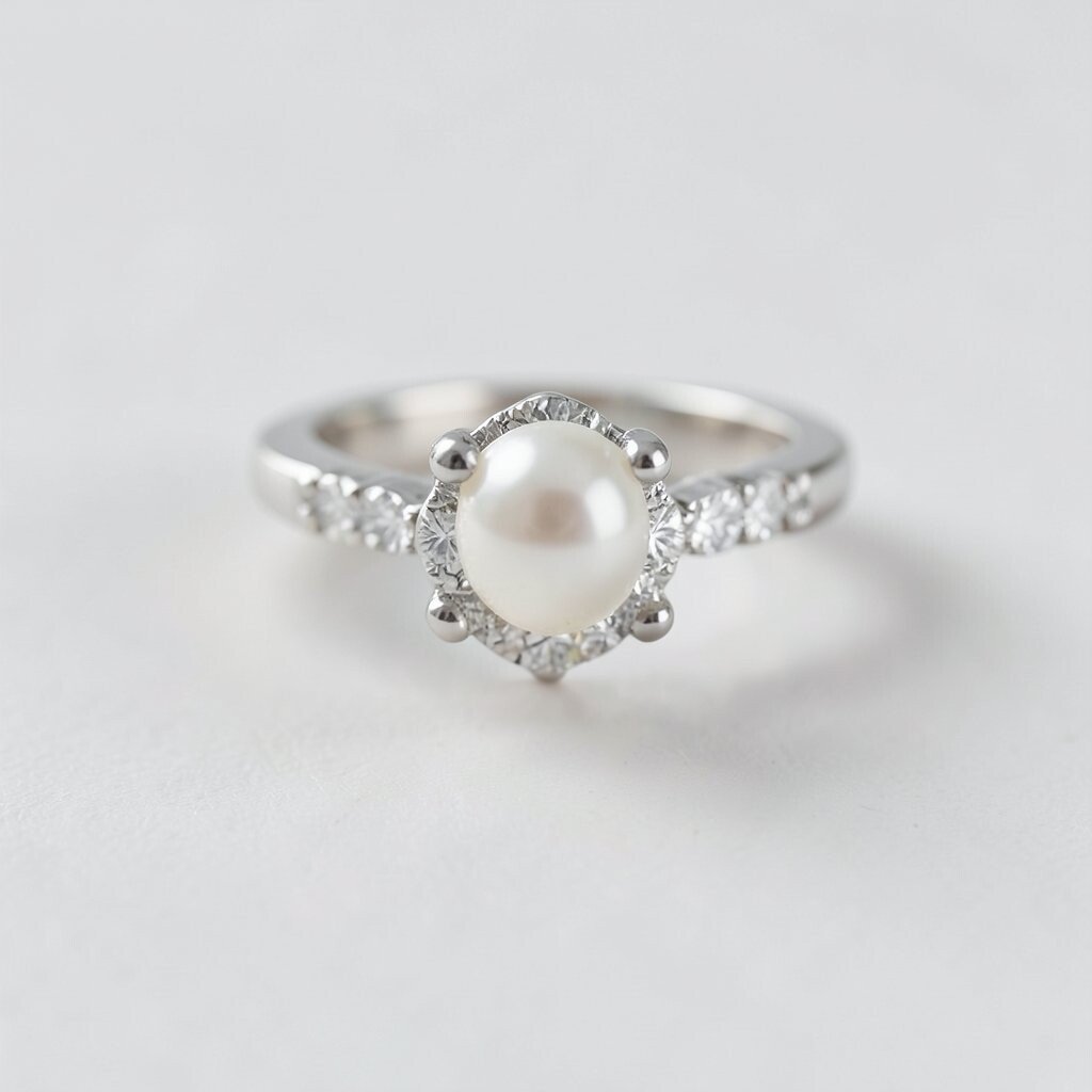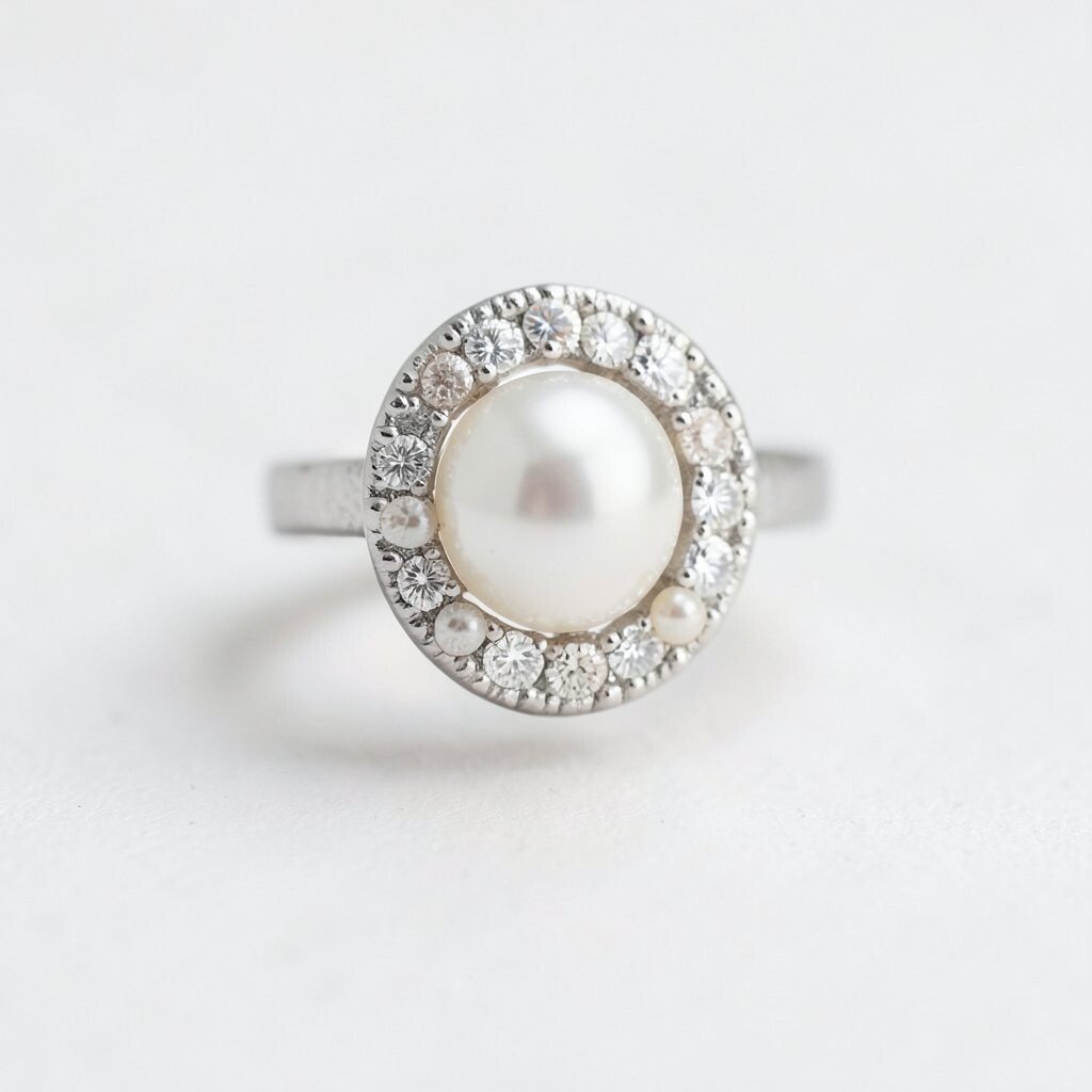 Opt for this style if you want a bit of sparkle with your classic pearl. Pair it with a matching necklace or earrings to complete the look. It’s a perfect choice for engagements or anniversaries.