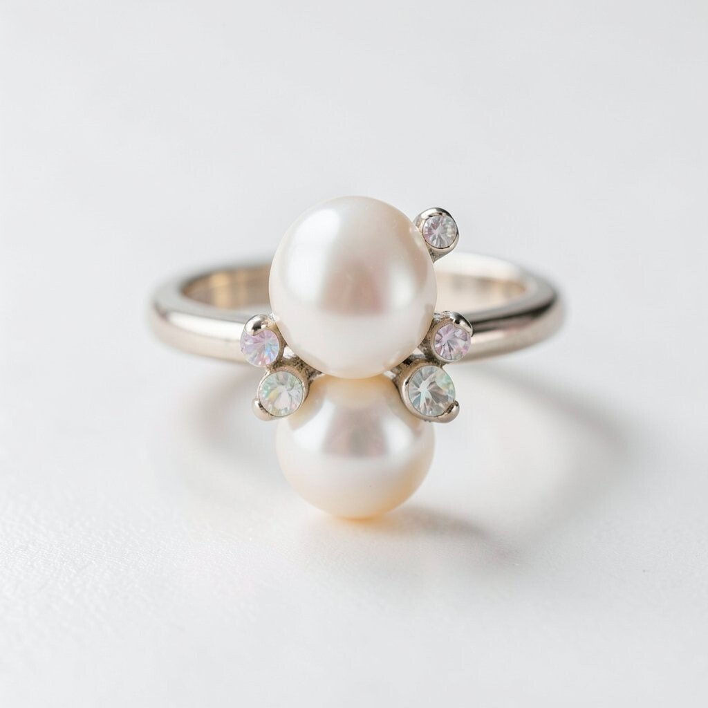 Consider wearing it on different fingers for a modern look. Double pearl rings can be worn alone or stacked with others.