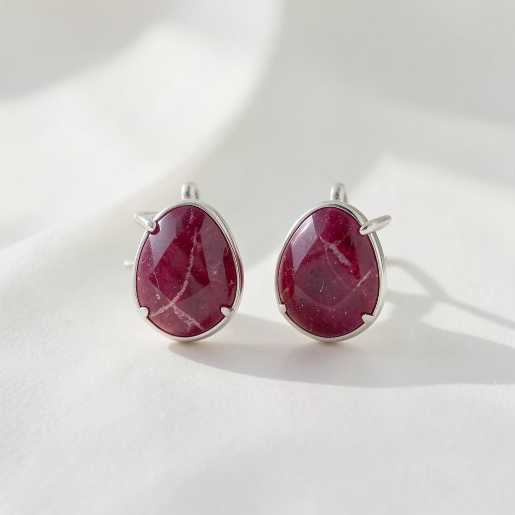 Ruby earrings are bold and vibrant, symbolizing love and passion. Their deep red color is striking and eye-catching.