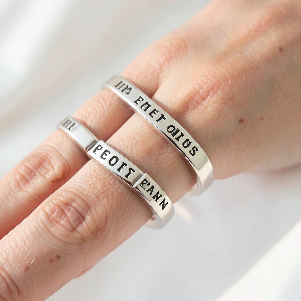 Consider stacking multiple name rings for a layered look. This trend is both modern and meaningful.