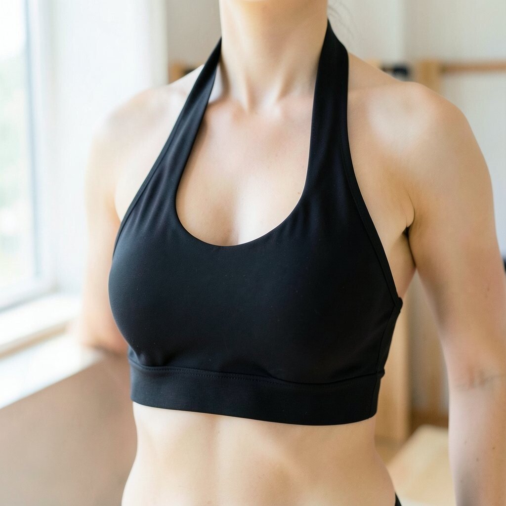 High-neck sports bras provide extra coverage and support. They’re a great choice for intense Pilates sessions.