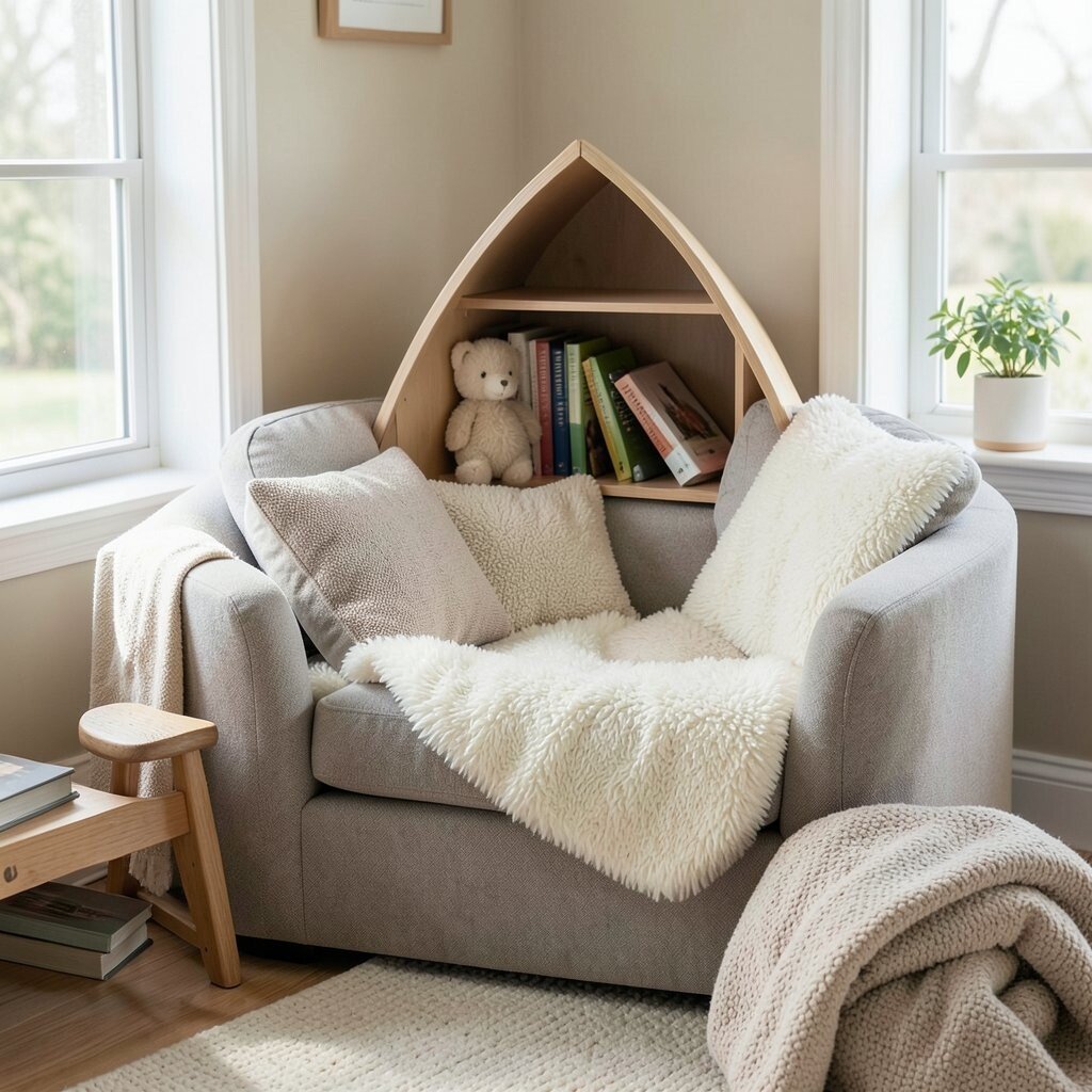 Stack cushions to form walls and add a soft blanket for comfort. This space becomes a personal haven for reading and relaxation.