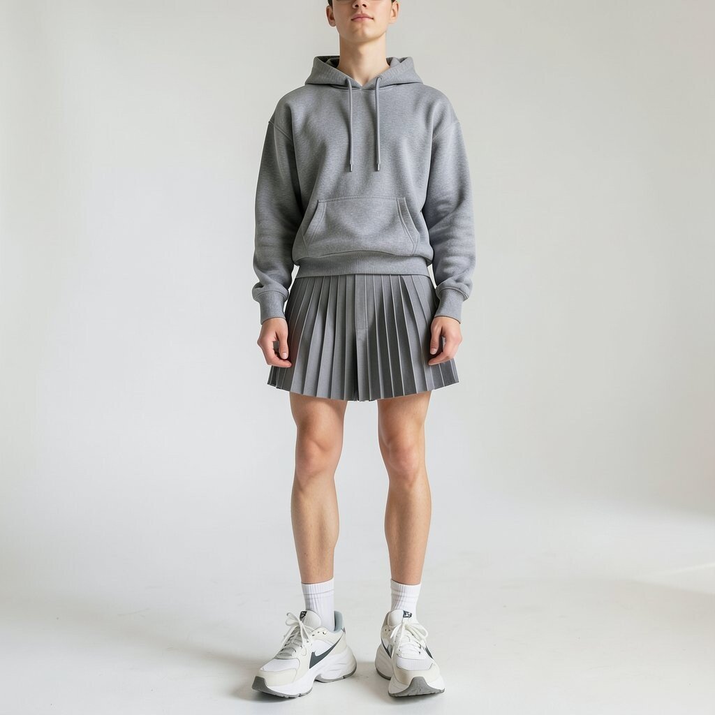 Combining a cozy hoodie with a pleated skort creates a unique blend of casual and sporty. This look is perfect for a relaxed day around town.