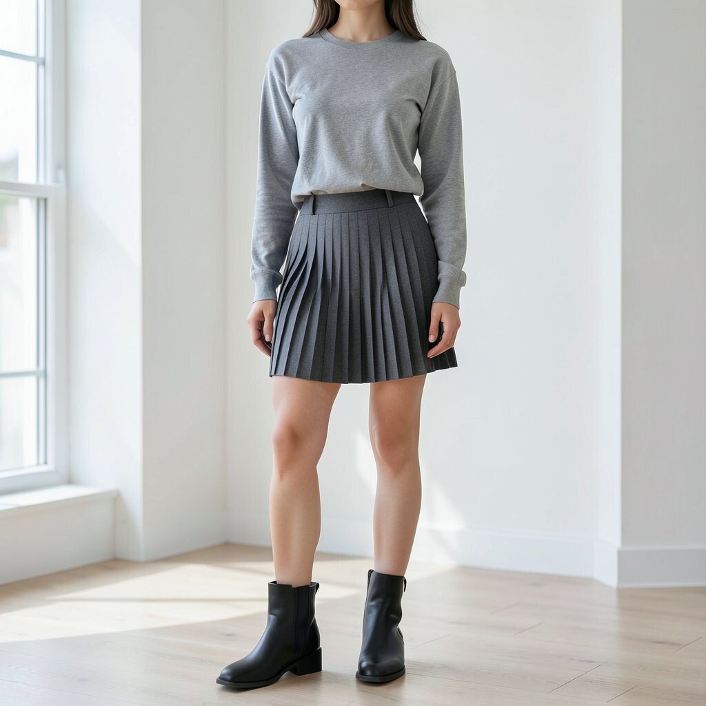 A cozy sweater paired with a pleated skort creates a perfect transitional outfit. This look is ideal for the changing seasons.