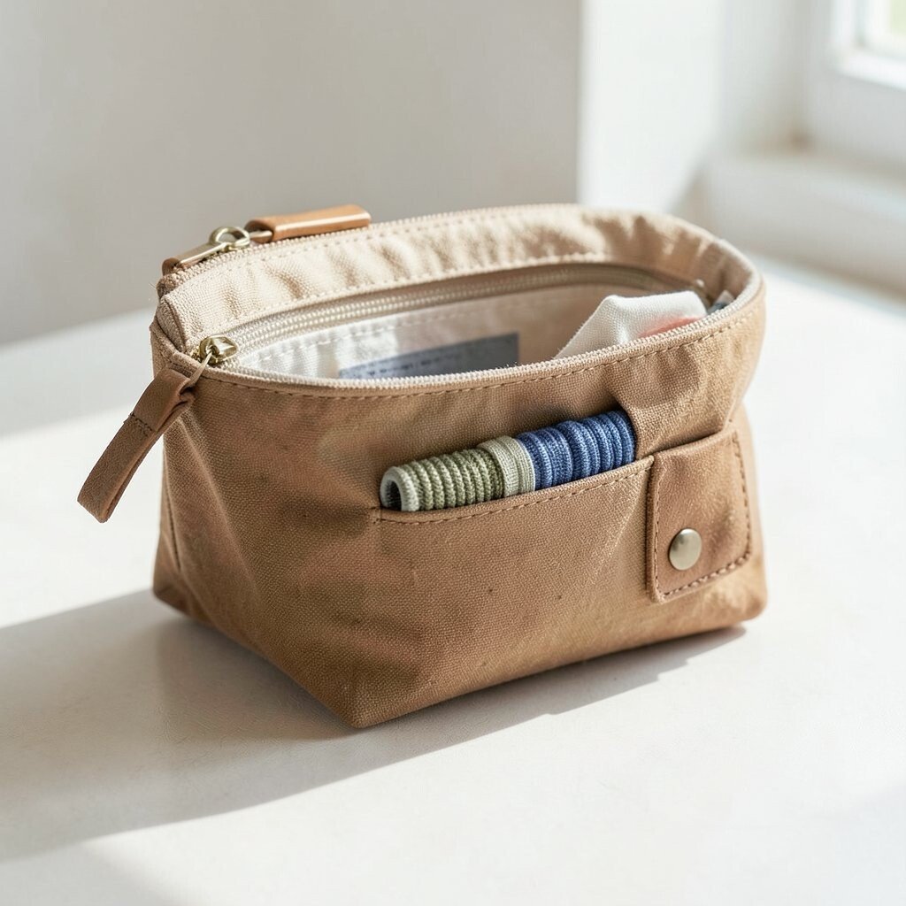 Choose a design that’s easy to clean and fits your purse perfectly. These pouches are budget-friendly and available at most grocery stores.