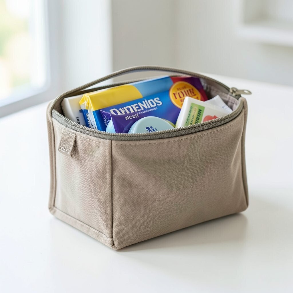These kits come pre-packed and are small enough to fit in any purse. They’re practical, inexpensive, and provide peace of mind. Available at pharmacies or online.