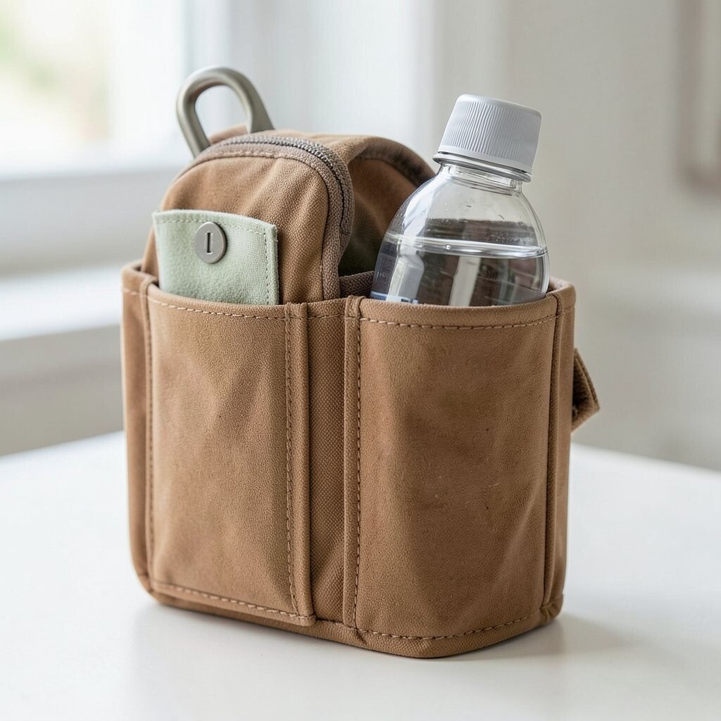 Stay hydrated with a water bottle holder that fits inside your purse. Choose a lightweight, leak-proof design that won’t add extra weight.