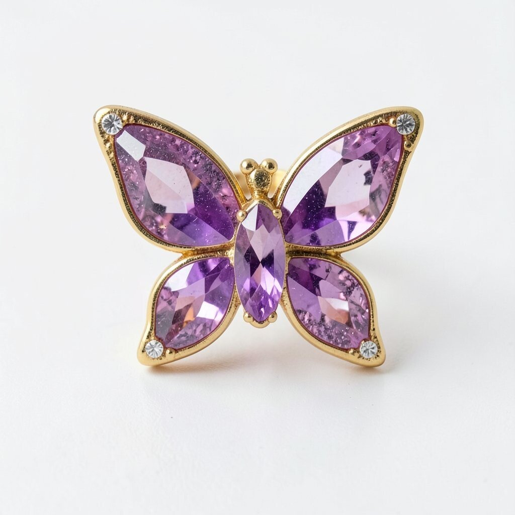 An amethyst butterfly brooch looks playful and graceful at once. The purple stones give the wings a rich, royal feel.