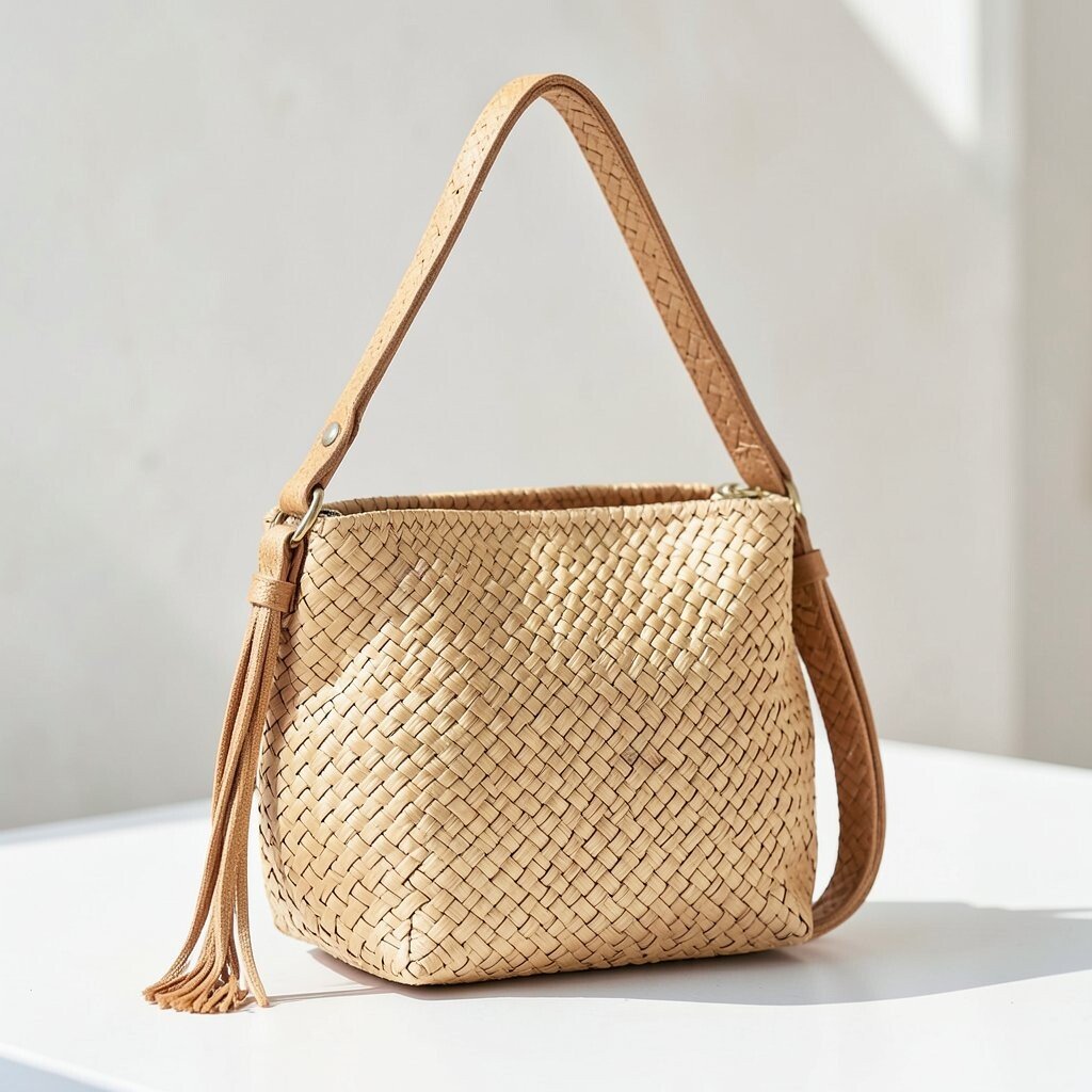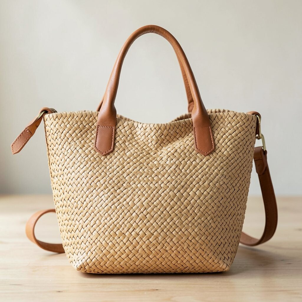 For a more polished look, consider a structured raffia handbag. Its rigid shape adds sophistication to any outfit.