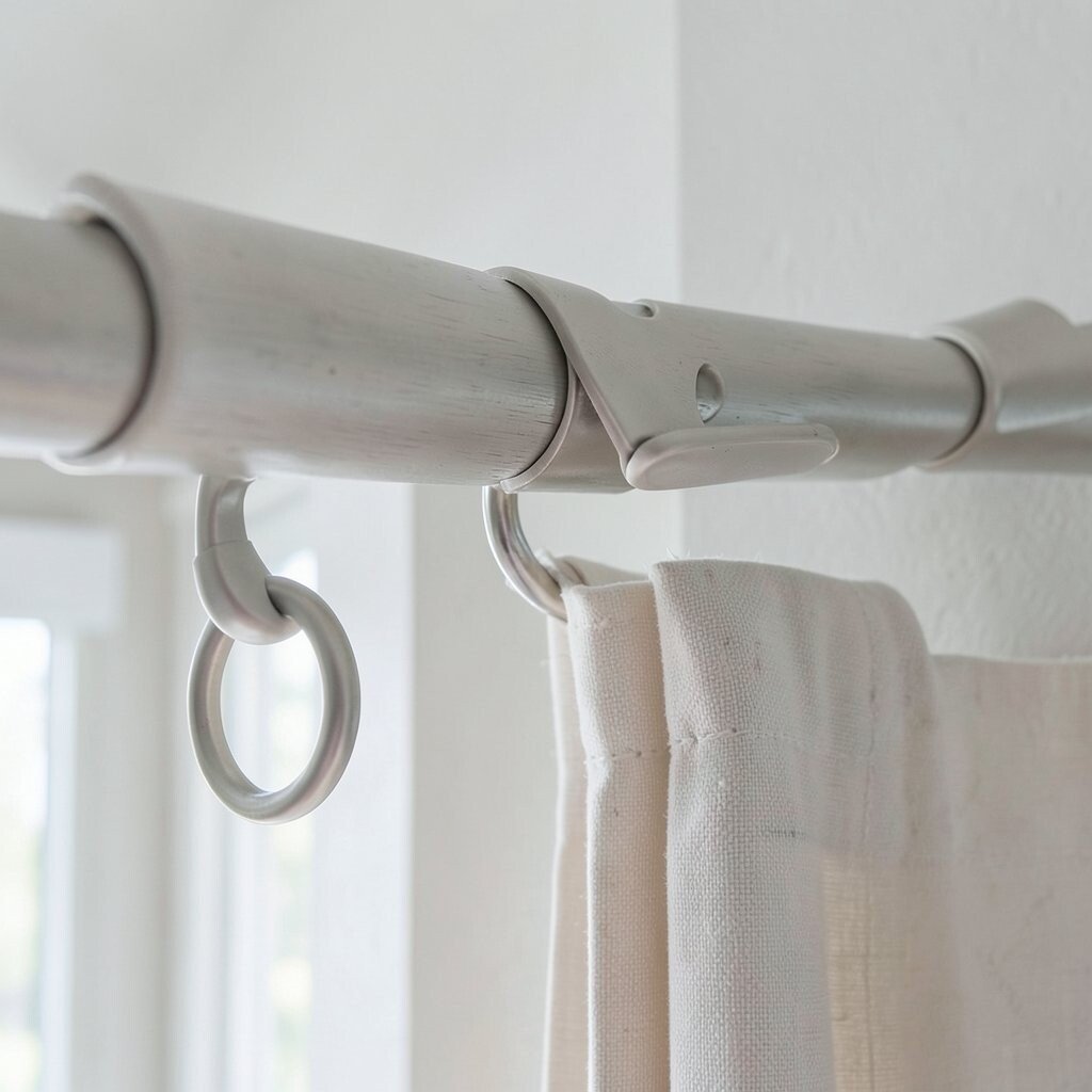 Clip-on curtain rings are an easy way to hang curtains without traditional rods. They’re versatile and can be used with various materials.