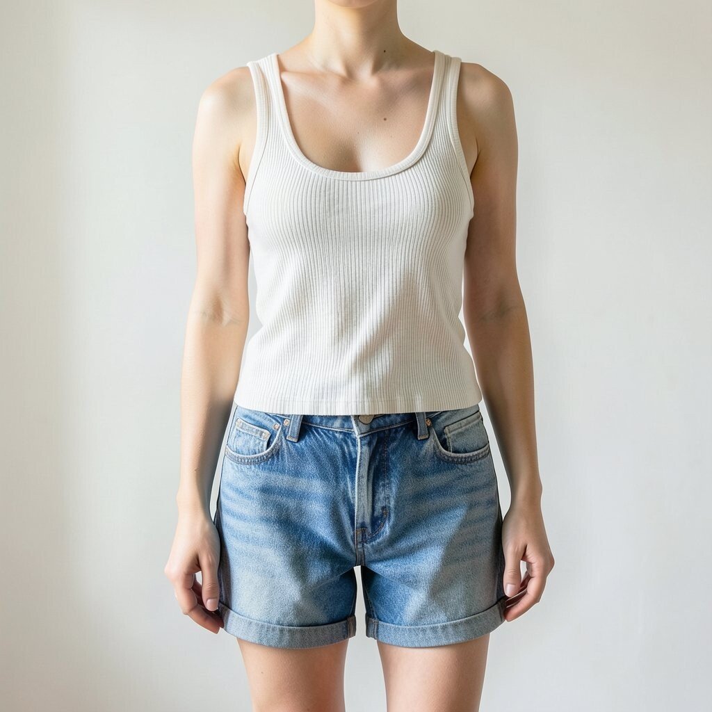 A classic white ribbed tank top is an iconic piece. It’s perfect for layering or wearing solo.