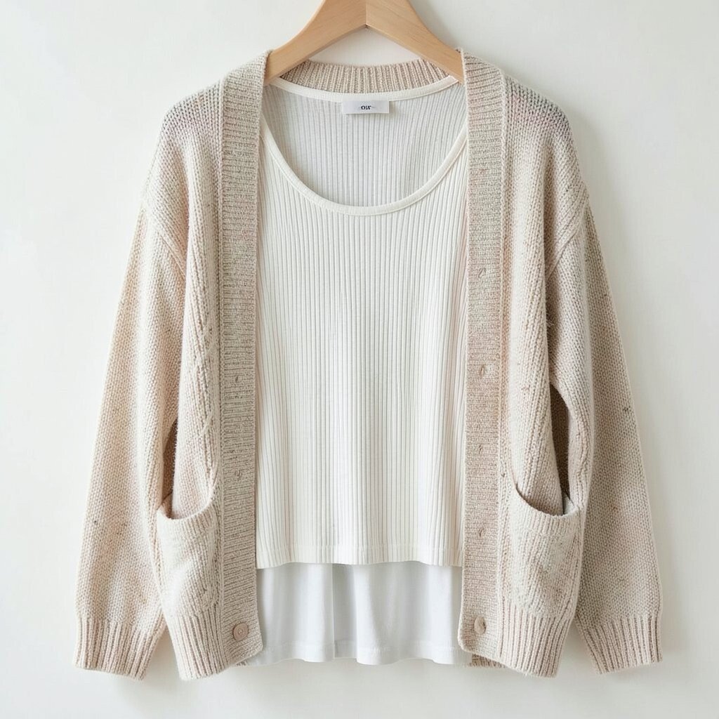 The texture of the ribbed fabric adds depth to your ensemble. Choose a cardigan in a contrasting color for a playful twist. This look is both comfortable and stylish.