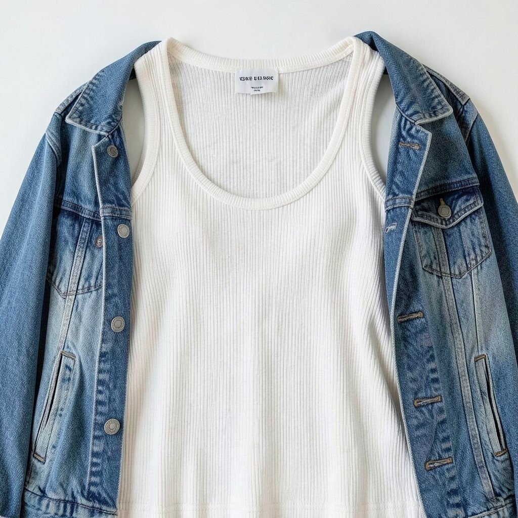 Combine a ribbed tank with a classic denim jacket for an effortlessly cool vibe. This combination never goes out of style.