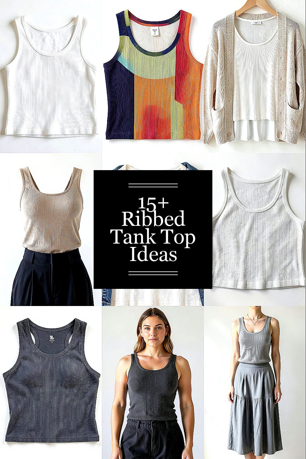 A classic white ribbed tank top is an iconic piece. It’s perfect for layering or wearing solo.