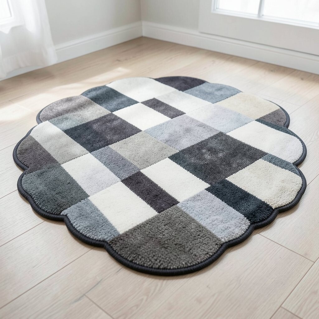 Checkerboard patterns are coming back in style, and scalloped edges add a fresh twist. These rugs can bring a playful yet sophisticated look.