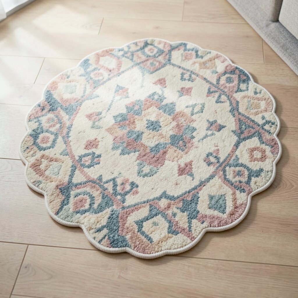 1. Vintage Pastel Scalloped Rug