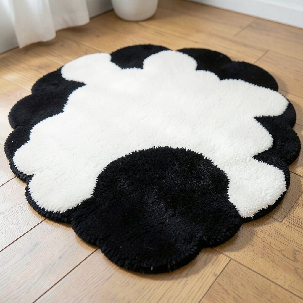 Black and white scalloped rugs offer timeless elegance. Their simple yet striking design can complement any color scheme.
