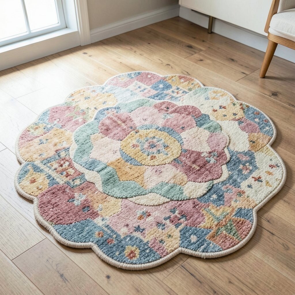 Artistic scalloped rugs are like paintings for your floor. They feature unique designs that can transform a room into an art gallery.
